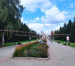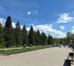Парк заложен в 1934 г. Архитекторы: Л.В. Шишов, П.И. Лонтропов. Парк расположен в центральном районе города, площадью около 100 га, 70 из которых – это лесной массив. Парк включает в себя множество аттракционов и развлечений. Здесь организуют культурно-развлекательные программы, концерты. На территории установлен светомузыкальный фонтан, несколько аллей с современными скульптурами.