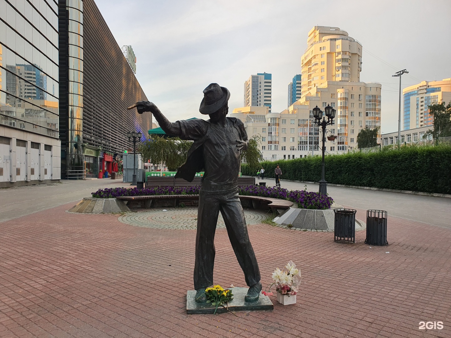 Американский поп-певец, танцор, автор песен, филантроп, предприниматель. Один из самых успешных исполнителей в истории, обладатель 13 премий Грэмми. Годы жизни (29.08.1958 - 25.06.2009 гг.). Памятник из бронзы высотой почти 3 метра и весит около 500 килограмм. Майкл Джексон изображен танцующим: правая рука - чуть впереди и словно указывает на зрителей, левая - прижата к груди, а ноги готовы к «лунной походке». Скульптура стала первым российским памятником американской поп-звезде.