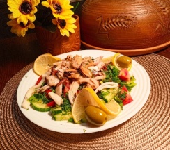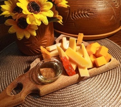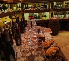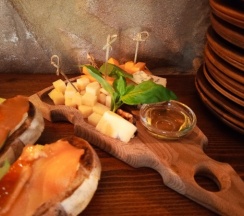 Скорее напоминает винный магазин с закусками. Продают в разных тарах от больших бутылок до малышек. Есть ассортимент сыров, есть каталог с продукцией.
