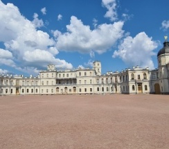 При первом же взгляде на дворец поражает его монументальность и уникальное сочетание черт неприступной крепости и изящной императорской резиденции. Это делает его непохожим на другие дворцовые ансамбли пригородов Санкт-Петербурга. Величественный фасад, окруженный рвом, сразу же настраивает на глубокое погружение в историю.