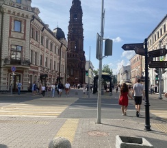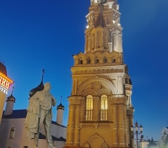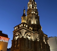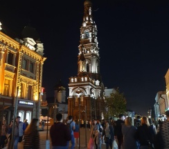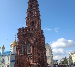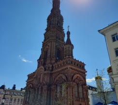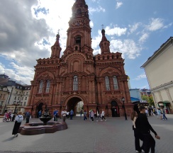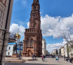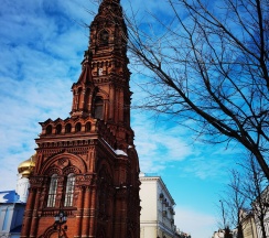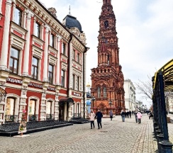 Это главная красная свечка в центре Казани, самая узнаваемая башня на Бауманке. Сразу главный вопрос, можно ли залезть наверх, ответ, как повезет, ее то открывают для туристов, то закрывают, так что это лотерея, надо узнавать на месте. Основная функция этой колокольни сегодня, быть главным ориентиром и фото-объектом на пешеходной улице, все назначают встречу у нее и фоткаются на ее фоне. Если тебе повезло и смотровая открыта, то вид оттуда классный, вся Бауманка как на ладони, но не жди панорамы, как с центра семьи Казан, тут вид более локальный. По сути, это просто очень красивый и высокий кусок истории посреди туристического потока, который отлично справляется со своей работой, быть красивым, особенно вечером с подсветкой. Короче, мимо вы все равно не пройдете, полюбоваться и сфоткаться, обязательно, а насчет подъема наверх, просто подойдите и проверьте, работает или нет.