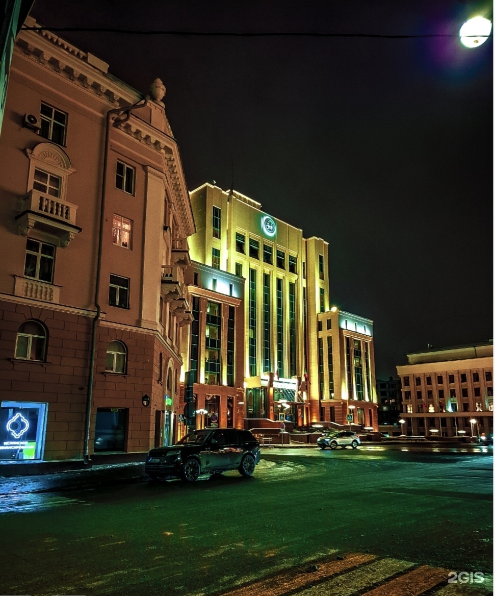 "Здание начали строить в 50-е годы XX века. По первому проекту оно должно было стать сталинской высоткой с разнообразными декоративными элементами. В результате достроили здание только к 1962 году и вдвое меньше в высоту, чем было запланировано.Позже за более старым решили построить новое здание. Новое строение переменной этажности, фасад выполнен в современном лаконичном стиле с вертикальными плоскостями остекления. Отделан натуральным камнем коричневого и бежевого цвета."