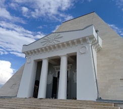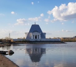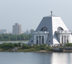 Памятник находится в 2 км к северо-западу от Кремля, на естественном холме, омываемом водами р. Казанка. Известен более как Памятник русским воинам, павшим при взятии Казани. Памятник был заложен в 1813 на месте братской могилы воинов, павших в бою 1552 при взятии Казани, и освящен лишь в 1823 году. Это центрально-купольное сооружение, квадратное в плане, имеющее вид массивной двадцатиметровой усеченной пирамиды, с порталами, установленными со всех четырех сторон и являющимися входами во внутреннее церковное помещение. Под центральной частью – склеп. В советские времена после разлива Волги памятник, оказался в островном положении, и туда добраться можно было лишь на лодке. В последнее десятилетие от Кировской дамбы к памятнику была сооружена насыпь, позволяющая добраться всем желающим. Храм-памятник хорошо виден из Кремля, а также из поездов, прибывающих в Казань со стороны Москвы.