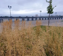 Upd: освещение в одном конце набережной наконец-то появилось, но горит через день. Плиты разваливаются из-за жары. Но устанавливать их должны были с расчетом на жару. Люди, кто пешком, кто на колёсах, хаотично передвигаются по велодорожке, а часто и по встречке. Опасное место