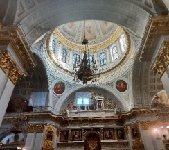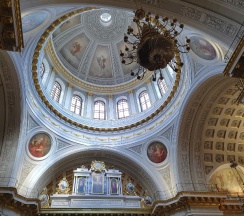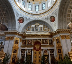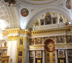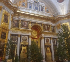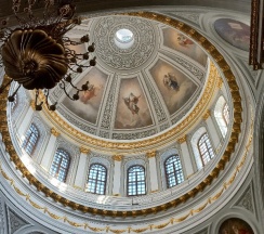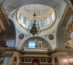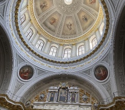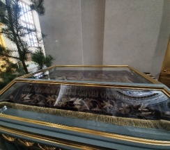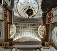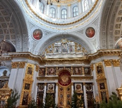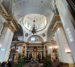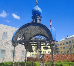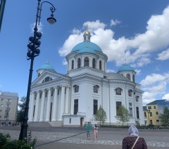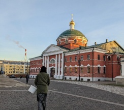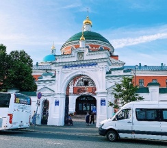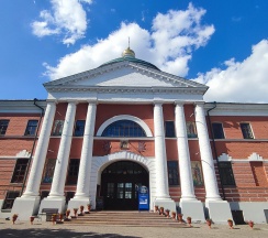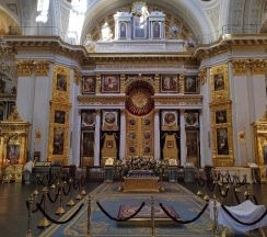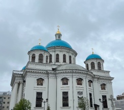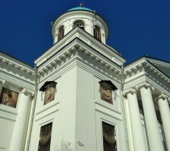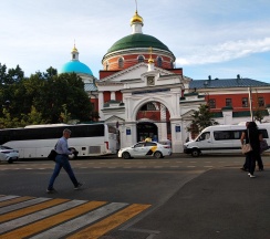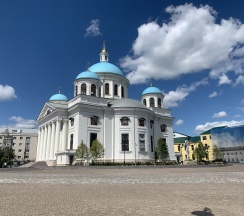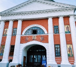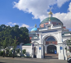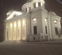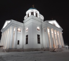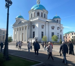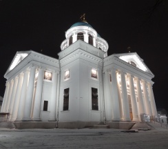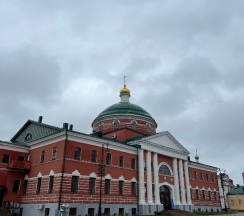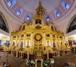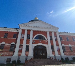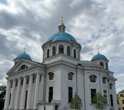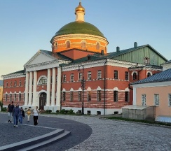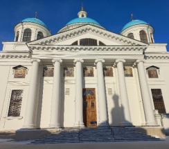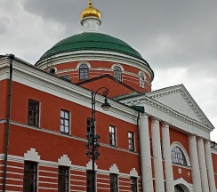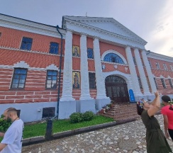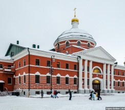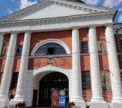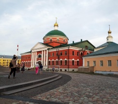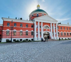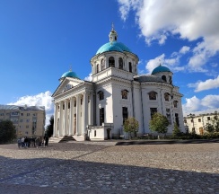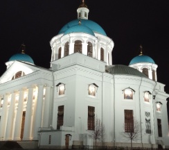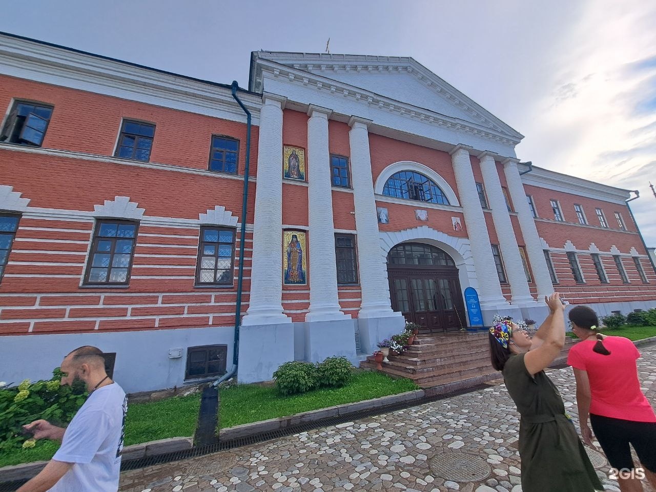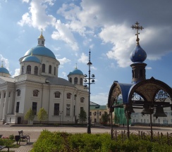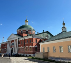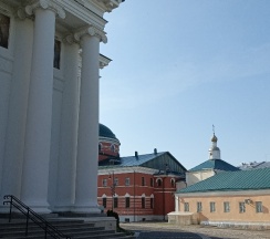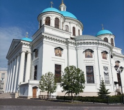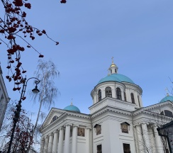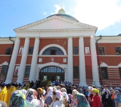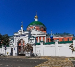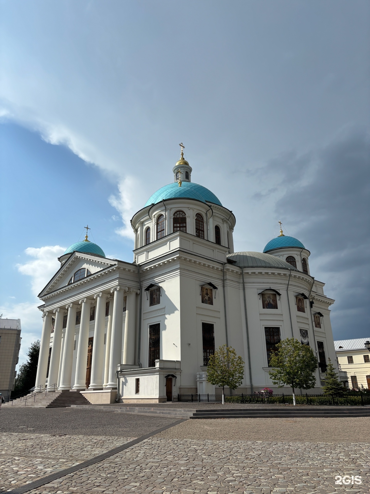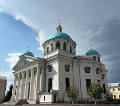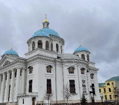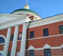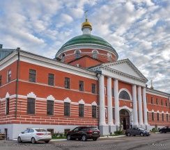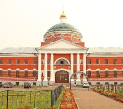 Крестовоздвиженский собор является частью Богородицкого монастыря. Церковь имеет мистический и вместе с тем несколько домашний вид, что соответствовало духовным настроениям российской аристократии того времени. Таинственный полумрак храма, массивные колоннады, иконостас в форме воздвигнутого четырехконечного креста, озаряемого золотыми лучами, падающими сверху сквозь круглое окно в потолке с отлитым на нем изображением всевидящего ока – все здесь должно рождать духовные ощущения у молящегося. Строительные и отделочные работы продолжались несколько лет, церковь была освящена лишь 15 сентября 1825 г. в честь Воздвижения Креста Господня, хотя все иконы были готовы уже в 1823 г. Церковь была устроена однопрестольной – во имя Животворящего Креста Господня.