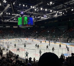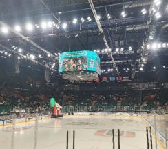 Отличная арена, уютная. Приехали из Москвы погулять по городу, заодно и на хоккей. Хорошая арена, много развлечений для детей, атрибутики и еды. Единственный момент не понравился это то что стойки столов на которых кушаешь расчитаны на взрослых людей.а моя младшая дочка ниже стола, мы выкрутились из ситуации отодвинув стол к сцене где выступал диджей, дочка стала на сцену тем самым поровнялась отлично со столом. Добра и процветания клубу и арене 🏒🏒🏒🔥💝
