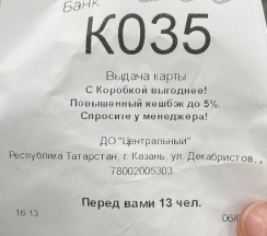 Качественное и быстрое обслуживание. Подробно рассказывают о продуктах. Подключила коробку, теперь коплю кэш))) спасибо сотрудникам банка!!!
