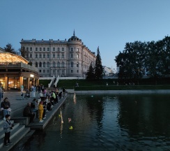 Это главная тусовка казанских хипстеров и студентов. Название историческое, никакого черного озера тут давно нет, есть пруд, который зимой превращается в самый модный каток в городе. Функция у парка двойная, зимой, это стопроцентно каток, с музыкой, подсветкой и глинтвейном, а летом, это приятное место, где можно поваляться на траве, выпить кофе и поглазеть на творческую молодежь. На входе стоит знаменитая Арка влюбленных, в которую можно что-то шептать, вечный аттракцион для парочек. Сам парк не очень большой, но уютный, он не для долгих прогулок, а чтобы прийти и зависнуть на пару часов. По сути, это общественное пространство европейского типа, его задача, быть центром притяжения для молодых и активных. Короче, если хотите посмотреть на современную, нетуристическую жизнь Казани, то вам сюда, это не парадный парк, а живое и модное место.
