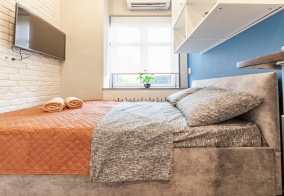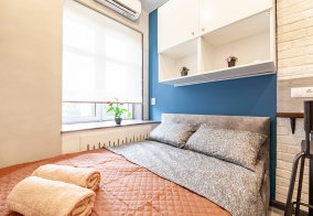 Однокомнатная квартира может вместить в себя до 4 гостей. В спальне - удобная двуспальная кровать с двумя прикроватными тумбами, двуспальный выдвигающийся диван, плоский телевизор и шкаф для одежды и белья. На кухне гарнитур и обеденная зона. Санузел в красивой плитке до потока, с ванной, совмещенный, евростандарт. В прихожей шкаф для верхней одежды с зеркалом, тумбочка под обувь. К услугам гостей: электроплита, кондиционер, металлическая дверь, домофон, свч-печь, электрический чайник, утюг с гладильной доской, фен, посуда и принадлежности, телевизор: кабельное тв, постельные принадлежности. Апартаменты расположены недалеко от станции метро Новослободская, расстояние до ближайшего ж/д вокзала - 5.4 км, до аэропорта - 27 км....