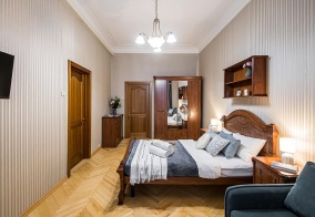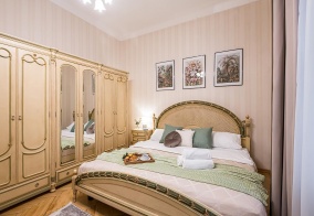 Просторные апартаменты в 3х минутах от метро Арбатская. Площадь квартиры более 130 кв. метров. В гостиной комнате большой обеденный стол на 8 персон, плазменный телевизор с функцией Smart TV, два комфортабельных дивана. В спальных комнатах двуспальные кровати (140*200, 160*200), платяные шкафы и другие атрибуты интерьера, которые создают особую атмосферу изысканности и уюта. Кухня оснащена посудомоечной машиной, варочной панелью, духовым шкафом, холодильником. В квартире два санузла и просторная ванная комната, в которую можно попасть как со спальной комнаты, так и с коридора. Окна гостиной и спальной комнаты выходят на живописный Никитский бульвар, окна второй спальни - в тихий дворик без машин. Чтобы попасть на легендарную улицу "Старый Арбат", вам достаточно просто перейти дорогу. Кремль, ГУМ, Большой театр, Тверская улица, Красная Площадь в 10 минутах от дома. Рядом множество ресторанов и кафе. ...
