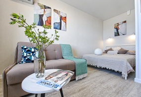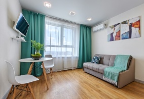 Были в Новосибирске проездом, останавливались на сутки. Выбор пал на этот отель, тк рядом с зоопарком, поблизости есть супермаркеты. В отеле сдаются не просто номера, а квартиры со всем необходимым: зубные щетки и паста, стиральный порошок, мыло и шампунь... Даже станок для бритья одноразовый в упаковке был (не встречали раньше). В нашем номере была большая кровать и диван в спальне, второй диван на кухне (до 6 человек можно было бы разместить). Постельное белье чистое, на основном месте уже застелено. Останавливались летом, поэтому одеяла были убраны, но были в шкафах и ящиках, в том числе, и дополнительные подушки. Утюг, доска для глажки. На кухне тоже все, что нужно есть. Балкон просторный с местами для посидеть и полежать, посмотреть на закат, на кольцо, по которому бесконечно едут машины. В общем, нам показалось это место уютным как дома, но есть, конечно, и замечания по уборке: до нас, видимо, останавливалась семья с маленькими детьми, тк стекла на балконе заляпаны маленькими детскими ручками; шторы в пятнах, хорошо бы постирать. Сильно мы, конечно, не рассматривали, не "ревизорро", возможно, могли бы найти и больше недостатков, но заехали отдохнуть с дороги и переночевать. В целом, нам понравилось это место. Удобно и уютно)