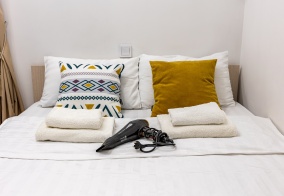 - широкую двуспальную кровать с ортопедическим матрасом и чистым постельным бельем для крепкого сна;