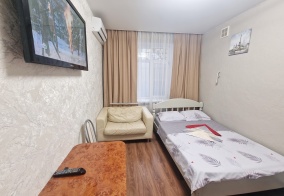 За такие деньги можно было повнимательнее следить за номером в плане чистоты и замены лампочек, обновить полотенца. Понравилось: Хорошее месторасположение, сам отель на 1 этаже жилого дома, в номере достаточно места. Есть 2 чашки, чайник, пакетики чая, сахар. Телевизор, холодильник, кондиционер. В ванной есть шампунь, гель, мыло, шапочки, халат. Также есть тапочки. Не понравилось: Прохладно, кровать сдвоенная из односпальных, не чистый пол, мусор в урне в комнате был не убран, темновато, так как несколько лампочек просто не горело как в ванной так и в спальне. Застиранные полотенца, подушки тоже пришлось спать на 2-х. Есть чайник, но нет воды. И самое главное это слышимость, это просто, слышно все, даже как сосед включает в розетку. От этого ночью просыпаешься.
