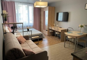 Комфортабельные трехместные студии эконом класса (14 кв.м.) со встроенной кухней располагается на пересечении Коломенской улицы и Свечного переулка, в 10 минутах от станции метро Достоевская/ Владимирская. В апартаментах две односпальные/ одна двуспальная кровать, дополнительное спальное место находится на втором ярусе над санузлом и прихожей (туда можно подняться по лестнице), прикроватные тумбочки, стол со стульями, LCD телевизор. Встроенная кухня: холодильник, чайник, микроволновая печь, электрическая плитка, вся необходимая посуда, столовые приборы и домашняя утварь. В ванной комнате находится душ, раковина, туалет, фен. В прихожей установлена стиральная машина-автомат. Интерьер выдержан в светло-бежевый тонах. Окна (стеклопакеты) выходят в тихий двор. Вход осуществляется с Коломенской улицы. На двери кодовый замок. Заезд осуществляется удаленно....