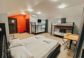 В июле 2024 провели в отеле 4 ночи, потратив около 11к за двухместный номер. Впечатления положительные: 1) фото номеров соответствует реальной картине; 2) мебель и ремонт новые, постельное хорошее; 3) в номерах высокие потолки, благодаря этому свежего воздуха хватает до позднего утра при закрытом окне; 4) очередей в туалет (2 кабинки) и душ (3 кабины) не было. Та же ситуация с кухней - свободно; 5) наличие террасы - отличный бонус. Можно вечером пить чай, сидя на свежем воздухе и под открытым небом; 6) чисто и опрятно, каждое утро работает уборщица. Из минусов: 1) не самый приятный район в городе: разрисованные вандалами стены домов, бомжи у метро, пару раз после 2 ночи встретились подвыпившие не агрессивные bydlo (обошлось без конфликтов); 2) в номерах нет зеркал. Заключение: В отеле комфортно, там приятно находиться и отдыхать в промежутках между экскурсиями и прогулками. Персонал приветливый и вежливый. Доступность до основных мест туризма отличная. Однако если переместить этот отель в Адмиралтейский район, будет просто шикарно. Всем советую ;)