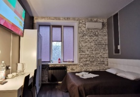 Неплохой отель, приезжали на несколько дней в отпуск. Метро в 15-20 минутах ходьбы, рядом есть продуктовые магазины (магнит, КБ). В номере всё необходимое - кухня (плита, мойка, микроволновка, холодильник, посуда на двоих, кастрюлька, сковорода), отдельный санузел с феном, сушилка для белья; утюга не было, но нам и не пригодился (а так видели в номере напротив и утюг с гладильной доской, думаю, если попросили бы, нам бы тоже выдали). Когда уходишь и забираешь ключ-карту, отключается всё электричество, но к вечеру холодильник всё ещё оставался холодным, с этим проблем не было. Место тихое, спокойное. За окнами дорога, но с очень низким трафиком, авто проезжали редко, поэтому не шумно и не очень пыльно. Напротив пекарня, в 5-10 минутах ходьбы кафешки и столовки. Соседей слышно не было. К кровати на второй этаж очень крутая лестница. Есть телевизор, можно выбрать что посмотреть на любой вкус. Никакой живности не было (тараканы, клопы). В ванной был набор мыльно-рыльных. По два полотенца каждому, большое и маленькое. Теперь из минусов. Первым же делом я проверила постельное бельё - было мятое, с волосами и сюрпризом вскрытая упаковка презерватива - видимо не успели полностью прибраться. Сразу сообщили администратору, без проблем всё поменяли. Не убирались в номере, даже не выносили мусор. Были проблемы с ключом картой, не смогли войти - нам выдали вторую, то есть поочередно нужно было прикладывать две штуки. Были и проблемы выйти из номера - два раза нам пришлось звонить админу, чтобы нас выпустили (а если пожар, так и застрянешь там ): В целом, впечатления нормальные.