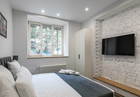 От Московского вокзала 5 минут ходьбы. Квартира оборудована всем необходимым для комфортного проживания: новая мебель и техника, 5 спальных мест (двуспальная кровать и 2 дивана).