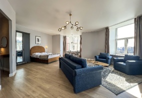 👍Расположение шикарное - самый центр, прямо рядом с сенным рынком! 5 мин от нескольких станций метро. Рядом кафе, магазины, ТЦ, любые тусовки. Нашли не сразу, но позвонили и админ нам всё рассказала. 👍Администраторы - молодцы! Приветливые. Всё подскажут, всё дадут. 👍Дают второй ключ, если нужен. 👍3 этаж, есть лифт, но и без него нормально - ступени не крутые, легко ходить. 👎👍Номера обычные, не тесно, но мебель уставшая, потёртая, уже не так как на фото при брони. Слышимость +-, думала, что будет хуже. Но, несмотря на рынок и дорогу под окнами - не шумно, гораздо слышнее гости в коридоре, но тоже ок. 👎"Двуспальная" кровать, но сдвинуты 2 матраса, матрасы тоже не огонь - продавленные, и в центре поэтому жёсткие борта матраса, прям до синяков, не лечь к центру. При этом одно одеяло, маленькое, узкое для двоих. Вот и выходит, что спишь по краям кровати, а одеялом укрыт только краешком. 👍В номере кондиционер, без него душновато даже если окна весь день приоткрыты. 👍Шампунь, гель для душа, тапочки есть. Зубного набора нет, но у нас был свой, поэтому не просили. 👍 Удобная кухня со всей посудой, холодной, горячей водой, микроволновкой, холодильником, чаем, сахаром и тп. 👍👎При заселении пол ванной был в чужих волосах. И вообще душ и унитаз бы отмыть хорошенько. При этом убирались потом каждый день: из видимого - застилали кровать, выносили мусор. Все равно приятно. 👎Нет фена в номере, приходится просить - это минус и очень странно. За свои деньги - хорошо! Расстроила кровать, одеяло и фен. В остальном - можно и вернуться!
