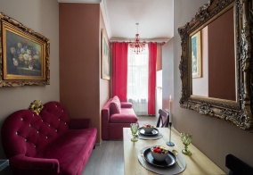 Двухкомнатная квартира бизнес-класса с изолированными комнатами и просторной кухней. Площадь квартиры — 55 кв. м. Квартира находится в одном из самых красивых уголков города на набережной реки Мойки в доме-памятнике архитектуры. Окна с современными стеклопакетами из металлопластика выходят в тихий, ухоженный двор. В квартире комфортно могут разместиться от двух до четырёх человек, а максимальное количество проживающих — пять. В первой спальне расположена двуспальная кровать, письменный стол, кресло, платяной шкаф, телевизор, установлен кондиционер. Во второй спальне есть двуспальная кровать, раскладной диван, журнальный столик, большой платяной шкаф, телевизор. Кухня оснащена бытовой техникой (газовая плита, микроволновая печь, электрический чайник, холодильник). В обеденной зоне стоит круглый стол и 4 стула. Имеется вся необходимая посуда. Санузел смежный — душевая кабинка, раковина, зеркало. туалет. В квартире есть доступ к бесплатной сети Wi-Fi....