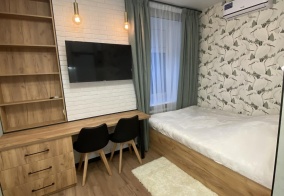 Плюсы: цена, кухня со всем необходимым. Минусы: старые деревянные окна, мрачный номер, отсутствие шумоизоляции.