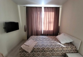 Отличный отель. В номере было все необходимое: телевизор, холодильник, набор полотенец, тапочки, гели шампуни. Бронировали номер с гидромассажной ванной. Все супер. Спасибо большое администрации!