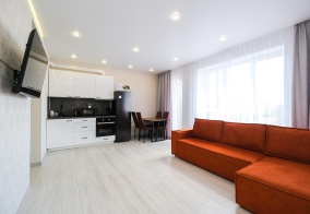 Небольшая но уютная однушка все необходимое в наличии. 4человека вполне. Инфроструктура средне до магазина нужно пройтись. Но в Целом довольны.