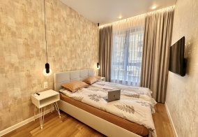 В апартаментах: Wi-Fi, Телевизор, Микроволновка, холодильник, электрочайник, индукционная плита, утюг, фен, водонагреватель, стиральная машина.
