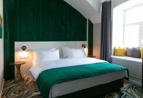 У отеля бесспорно выигрышная локация: в шаговой доступности расположено невероятное количество туристических локаций. С транспортной доступностью тоже порядок — всего несколько минут и ты у нужной остановки автобусов, трамваев или станции метро. Визуально интерьер выглядит симпатично, есть включённые завтраки и порядка 4 парковочных мест во дворе — их нужно бронировать заранее. Мне по телефону сказали, что парковок нет как таковых, но во время заселения выяснилось, что одна всё же была для меня забронирована. Из минусов отмечу состояние номера. В ванне не было вытяжки, на окнах сеток от комаров. Да и с зарядками у кровати беда: розеток не было вообще. На фотографиях номер друзей, которым повысили класс обслуживания — вот там проблемы зарядок не наблюдалось. Их номер был с видом на набережную. Мы брали номер с одной двухспальной кроватью, но нам дали с двумя сдвинутыми односпальными. Это привело к тому, что голова во время сна была у выключателя и во сне мы постоянно включали свет. Тоже странное решение. По итогу, отель хорош, чтобы остановиться на пару ночей чтобы просто переночевать, но жить дольше мне здесь было бы не комфортно. Ситуацию скрашивало гостеприимство ребят, которые тут работали. Спасибо вам 🤗