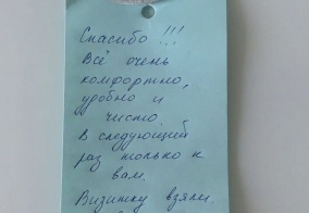 Очень хотехотелось бы по благодарить , руководителей и кто знанимается заселением гостей. Очень , отзывчивые приятные люди, в квартире комфортно , чисто и есть все удобства, тишина и спокойствие. Очень понравилось и уже хочхочется заселитьсзаселиться опять, в следующий раз обязательно выберу Вашу гостиницу. Спасибо, за то тепло , что организовали.