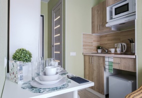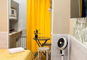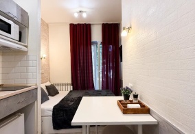 Хороший отель.Снимали на сутки студию с балконом.Номер небольшой, но есть все для комфортного проживания.Кухоннпя зона, можно приготовить еду самому.Номер оснащен умной колонкой.Удобное расположение.Метро в 7-10 минутах ходьбы.Споеойный район, без шума.Если буду приезжать, обязательно остановлюсь в этом отеле.Спасибо за комфортное проживание.