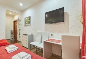 В целом пребыванием я была довольна. Бронировала номер односпальный стандарт. Чистый номер, чистый этаж с кухней, в свободном доступе на этаже имеется фен, гладильная доска с утюгом, кухонные принадлежности, микроволновка, холодильник, электрический чайник. На ресепшене приятная женщина, доступно всё объяснила. Минус звезда за человечка спящего на лестничной клетке (утром его уже не было) и за запах сигарет в ванной комнате.
