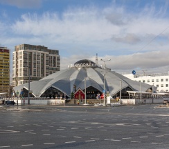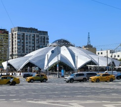 Даниловский рынок в Москве основан в 1963 году на месте древней торговой площади. Современное здание с уникальным куполом в форме цветка было построено в 1986 году. Купол диаметром 72 метра не имеет несущих стен и отличается высокой устойчивостью к погодным условиям.