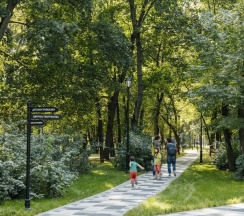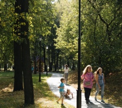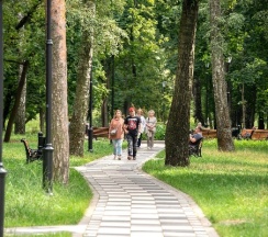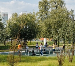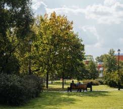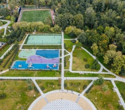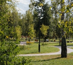 Красивый аккуратный парк. Есть спорт площадки, пруд, фонтан. Территория ухоженная. Заслуженные пять звёзд.