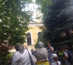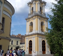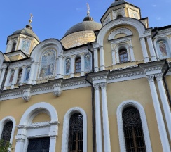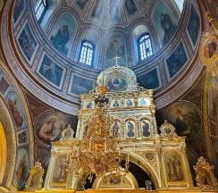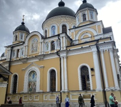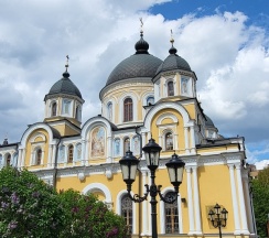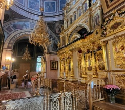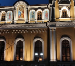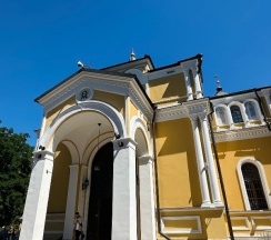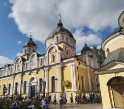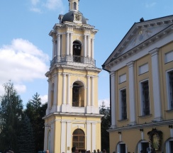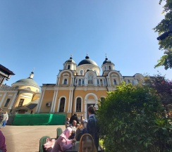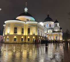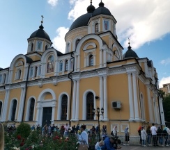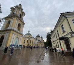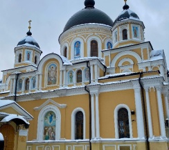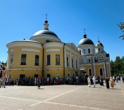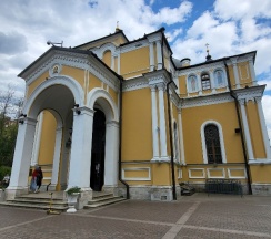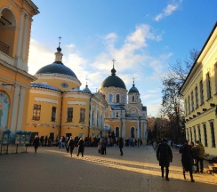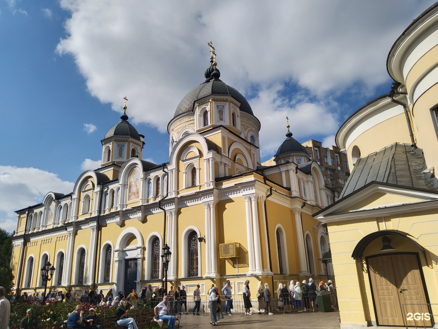 Изначально храм был возведён в 1772 году, а в 1853 году был перестроен по проекту архитектора М.Д. Быковского. Это стройное и величественное здание выполнено в романском стиле с элементами, характерными для греческого. Внешние стены, окна, двери и купола украшены орнаментами в том же стиле. Внутреннее убранство храма соответствует его внешнему облику. Основной храм, или так называемый корабль, разделён под куполом на три части лёгкими арками, поддерживаемыми колоннами. В центральной части – престол в честь Воскресения Христова, северный придел посвящён Тихвинской иконе Божией Матери, а южный – святой мученице Александре, память которой отмечается 6 ноября. Тройственная структура храма символически выражена в его трёх частях, трёх престолах и трёх входах. Просторное помещение храма хорошо освещается благодаря окнам и трибуне, при этом гармония его различных частей подчёркивает единство всей конструкции, воплощая идею храма.Алтарные иконостасы главного и придельных престолов, расположенные на трёхступенчатой солее, украшены искусной резьбой с позолотой. Некоторые иконы относятся к старинному греческому стилю, тогда как другие были созданы в новом, фряжском стиле. Особенно примечательна икона Тихвинской Божией Матери – древняя и почитаемая. Главный алтарь, хотя и небольшой по размеру, выделяется своим великолепием, его иконостас состоит из пяти ярусов. Свод над престолом, оформленный в виде сени, поддерживается шестью колоннами, которые отделяют южное и северное предалтарие. Стены и своды алтаря, храма и трапезной украшены изображениями сцен из земной жизни Христа и ликами святых, выполненными художниками Артари, Мягковым и Тивейским.С 1923 года обитель действовала как церковная община, а службы в Воскресенском храме продолжались до 1929 года, когда он был закрыт одним из последних монастырей в Москве. Активность членов общины, собиравшихся в храме, ненадолго отодвинула его закрытие. В 1929 году вышло постановление о закрытии монастыря. Настоятель, архимандрит Вениамин (Милов), и большинство монахов были арестованы. Оставшиеся братия перешли в храм Иерусалимской иконы Божией Матери за Покровской заставой. В советское время здание Воскресенского храма использовалось как спортивный зал, а в подвале располагалась бильярдная.В 1994 году Священный Синод Русской Православной Церкви принял решение о возрождении Покровской обители как женского монастыря. В начале 1995 года его настоятельницей была назначена монахиня Феофания (Мискина).