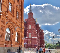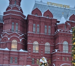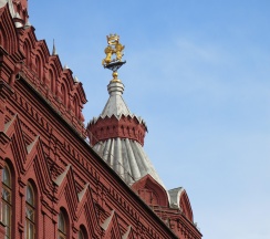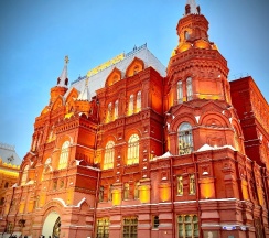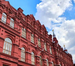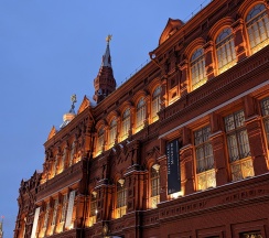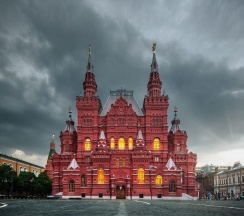 В северной части Красной площади еще с XVI в. располагался Земский приказ, для которого в 1699 г. было построено каменное двухэтажное здание с башней и наличниками в стиле нарышкинское барокко. Позднее часть помещений перешла в ведение Главной аптеки, а в 1755 г. здесь состоялось открытие Московского университета, который переехал в здание на Моховой лишь в 1793 г. Затем в старом здании Земского приказа находились конторы городского управления. Московская дума в 1874 г. выделила этот участок для постройки Исторического музея — такая идея была выдвинута в 1872 г. во время Политехнической выставки, приуроченной к 200-летию со дня рождения Петра I. Ее историческая экспозиция, посвященная Крымской войне, стала ядром, вокруг которого начала формироваться музейная коллекция.