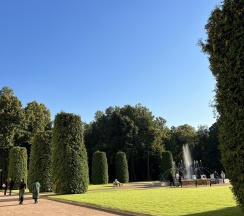 Этот замечательный семиярусный парк, один из старейших парков Москвы, имеет интересную историю, является объектом культурного наследия народов РФ федерального значения. Открыт для посещения только в субботу и воскресенье с 08.00 до 19.00, вход свободный. В парке малолюдно. Пока облагорожены только верхние террасы парка, имеющие вид лайт-версии Петергофа. Нижние террассы напоминают дикий лес с тропинками, куда надо ходить с репеллентом, потому что очень много комаров. К сожалению, совсем нет скамеек и невозможно подойти к Большому Садовому пруду, т.к. по берегу Исторический парк огорожен.