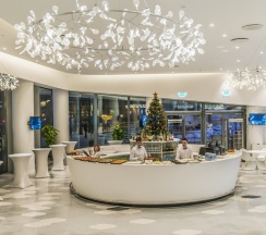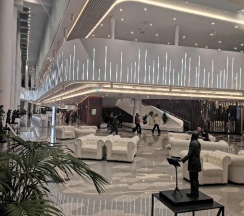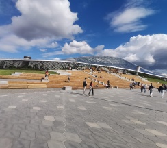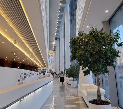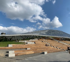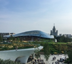 Здание имеет 4 наземных и 2 подземных этажа. Фойе расположены на трех уровнях. Стеклянные окна обеспечивают панорамные виды на Кремль, на старый город, на Москву-реку.