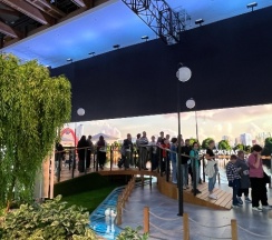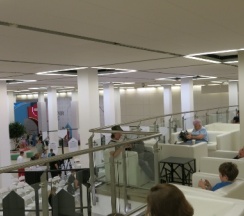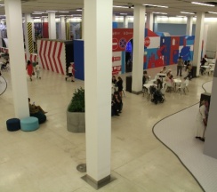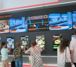 Комплекс подготовлен к приему посетителей, легкие конструкции разделяют пространство на тематические зоны, в залах работают юные приветливые волонтеры, а любителям цифрового общения лукаво улыбается бот Александра.