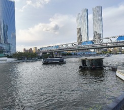 Торгово-пешеходный мост Багратион — часть делового комплекса «Москва-Сити», соединяющий Краснопресненскую набережную с набережной Тараса Шевченко. Построен из стекла и бетона по проекту архитектора Б. И. Тхора и открыт в 1997 году к 850-летию Москвы. Мост назван в честь русского полководца П. И. Багратиона.