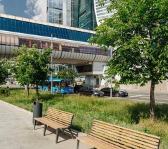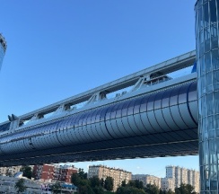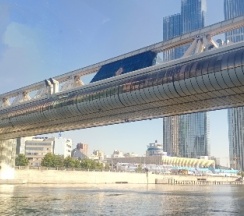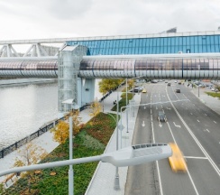 Со стороны Краснопресненской набережной мост связан с метро «Выставочная» и одноимённым речным причалом. С противоположной стороны он примыкает к «Башне 2000» и ведёт к аллее с памятником Багратиону. В 2004 году в вестибюле моста была установлена скульптура Эрнста Неизвестного «Древо жизни».