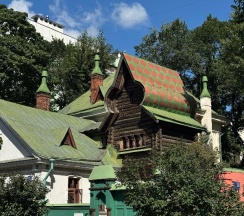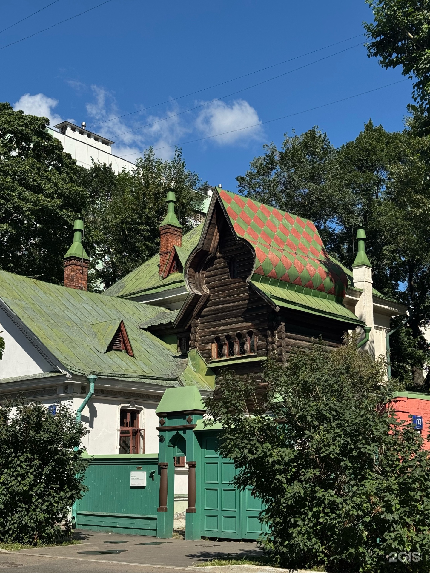 Художник <a target="_blank" href="https://um.mos.ru/personalities/vasnetsov">Виктор Михайлович Васнецов</a> (1848–1926) жил с семьей в этом доме в Троицком переулке (ныне переулок Васнецова) с 1894 по 1926 годы. Дом построен в 1894 году по эскизам и рисункам самого художника. Он представляет собой сооружение с бревенчатой пристройкой-теремом, украшенной крышей-бочкой. Окна декорированы лепными наличниками-кокошниками и колонками-дыньками. Разноцветные поливные изразцы с растительным орнаментом опоясывают дом с фасада, украшают печи в интерьерах, соединяя мир, сотворенный Богом, с миром, созданным человеческой фантазией.