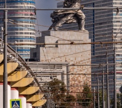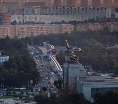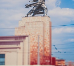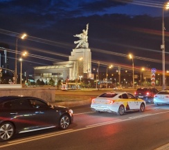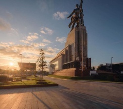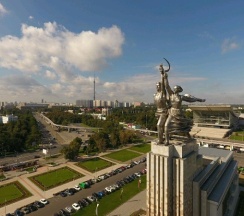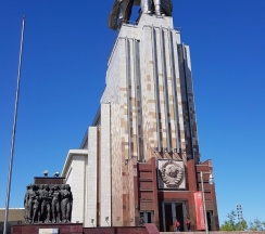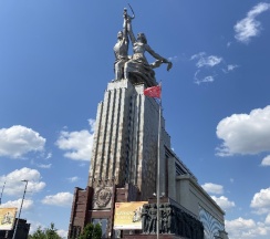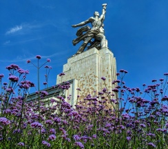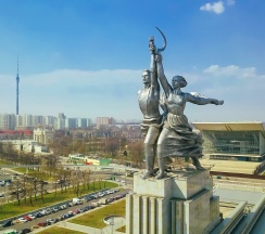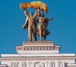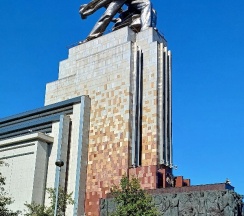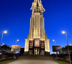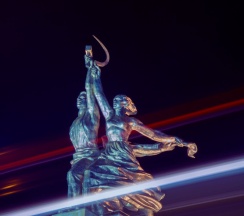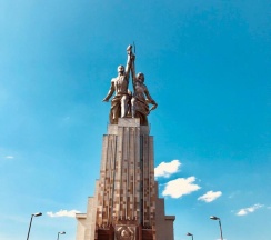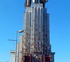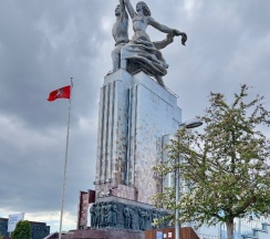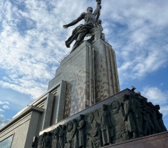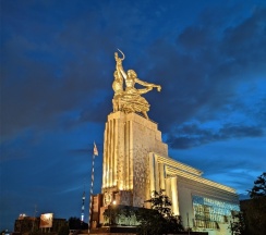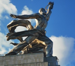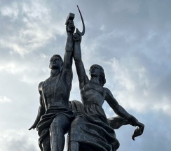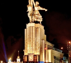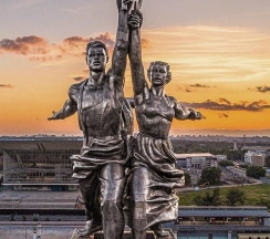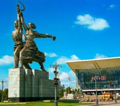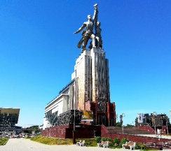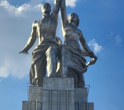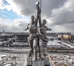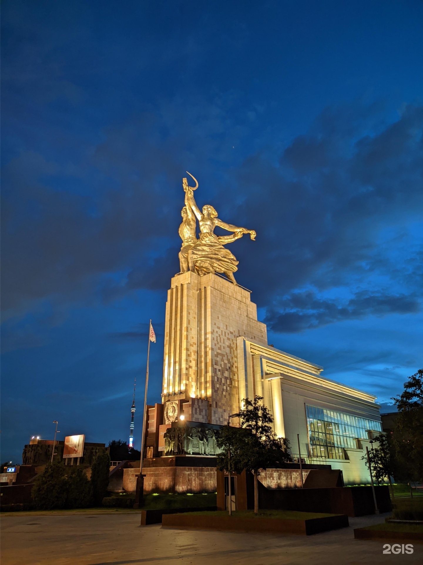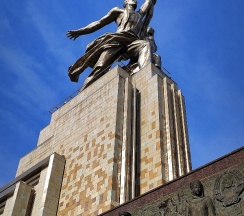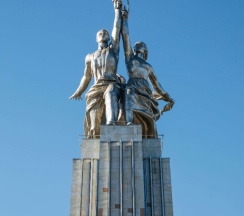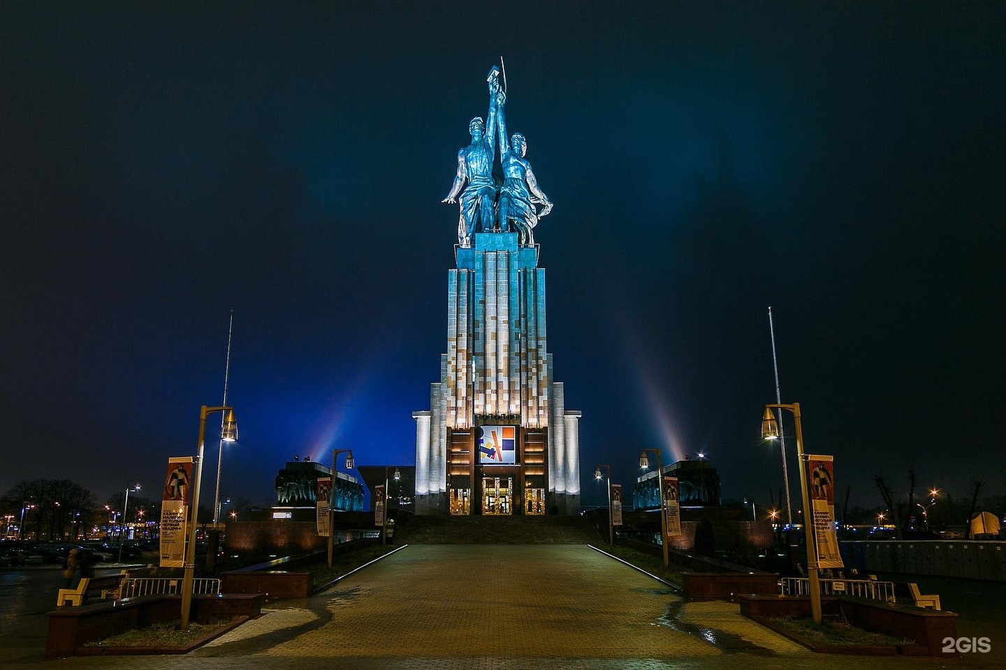 Впервые мир увидел произведение скульптора на Международной выставке в Париже 1937 года. Огромная, сильная и вместе с тем необычайно легкая, скульптура была сооружена на павильоне Советского Союза, построенного по проекту архитектора Б.М. Иофана. Юноша и девушка держат высоко над головой символы труда – серп и молот. Ткань юбки и шарф развеваются на ветру подобно алому стягу – герою советских парадов и демонстраций.