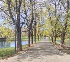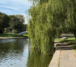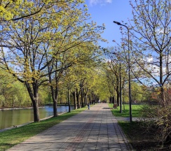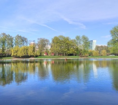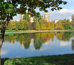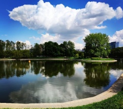 Строительство парка развернули на территории у Ленинградского шоссе, где напротив речного вокзала располагались старые отработанные карьеры Никольского кирпичного завода. Вот, что по этому поводу потом напишет Валентин Иванов: «Все единодушно пришли к выводу, что лучшего места для будущего парка, чем карьеры, заполненные чистейшей водой, разделенные живописными перешейками и окруженные всхолмленным рельефом, не найти». При обустройстве парка на базе затопленных карьеров были созданы пруды, хорошо подходившие для купания и рыбной ловли – для этого сюда запустили карасей.