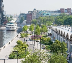 Крымская набережная, ограничивающая Музеон с северо-запада, возникла ещё позже, в конце XIX века. Вдоль набережной располагались лесные склады, бани, рынок, пустыри. Здесь боялись строиться, опасаясь весенних половодий. В центральной части будущего парка и вдоль его восточной границы, примыкая к Мароновскому переулку, находилось несколько жилых кварталов. Здесь стояли двухэтажные деревянные или полукаменные дома.