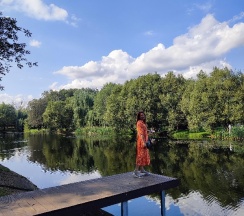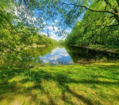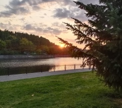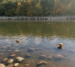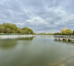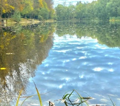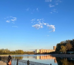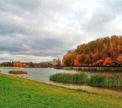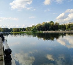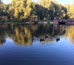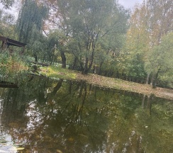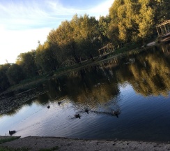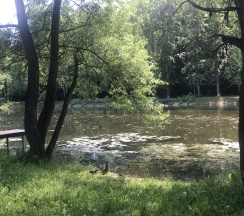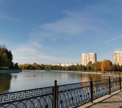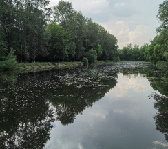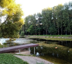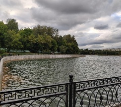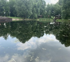 Парк хороший, дорожки есть, к воде можно подойти. Но пруд немного зарастает. Чистка не помешала