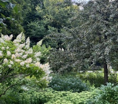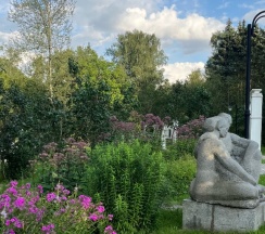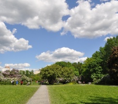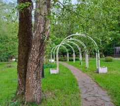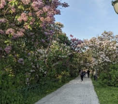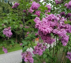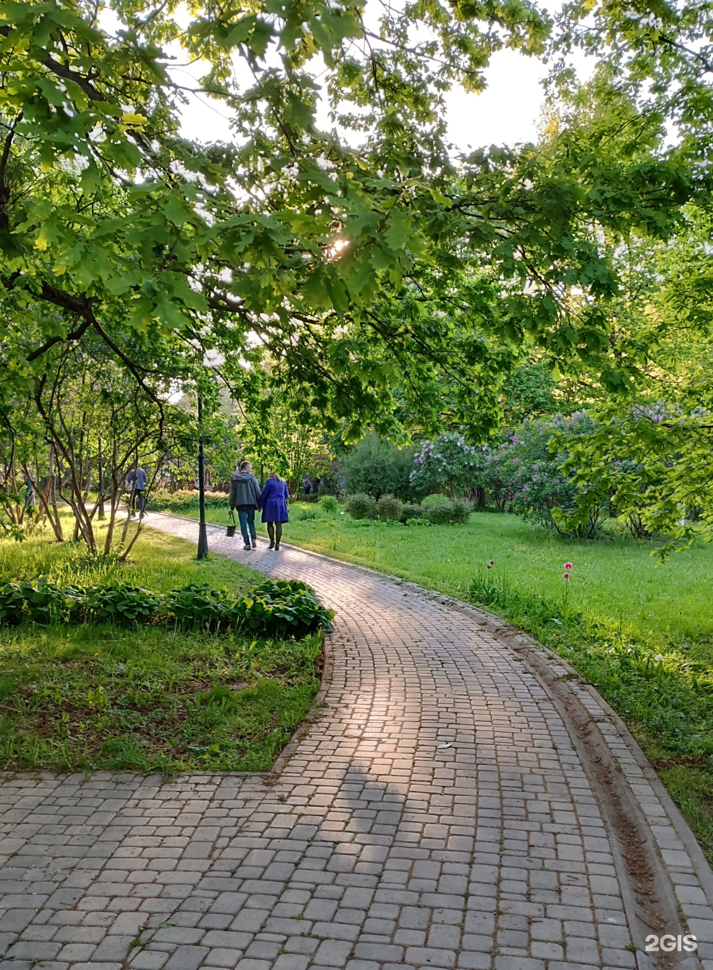 Этот сад был основан в 1958 г. Он небольшой, но очень красивый и уютный, особенно хорош во время цветения сирени. Открыт в летнее время до 22.00, в вечернее время освещается. Вход свободный. В саду довольно много сирени, есть интересные сорта. Есть даже кусты сирени с ветвями разных сортов. Имеется и знаменитая “Красавица Москвы” Л. Колесникова с пышными бело-розовыми кистями. На территории много скамеек, беседок, есть качели, сухой ручей и декоративные мостики. В саду можно увидеть скульптуры Бориса Мачкова, посвящённые любви, семье и материнству. Здесь тихо и спокойно. В общем, сиреневый сад в Сокольниках - прекрасное место для отдыха.