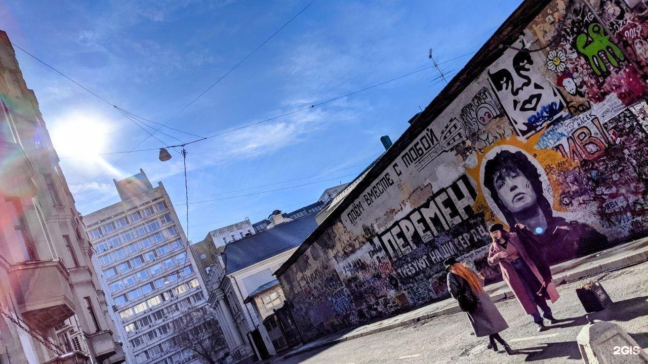 Стена (одна из стен дома 37) «появилась» в 1990 году, когда кто-то, после известия о гибели Виктора Цоя, высоко, через всю стену, вывел чёрным: «Сегодня погиб Виктор Цой». В ответ кто-то приписал: «Цой жив».