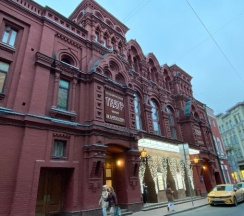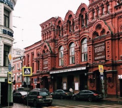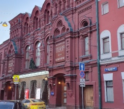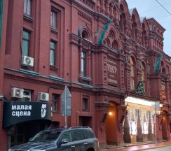 В доме на углу Большой Никитской и Малого Кисловского переулка почти всегда был театр. Когда-то здесь, правда, стояли каменные палаты обер-секретаря И.Я. Комарова, но уже в начале XIX в. на их месте можно было увидеть странное здание, имеющее большой круглый центральный объем и два прямоугольных объема по бокам. Здание принадлежало купцу 2-й гильдии Г.Н. Зарубину, и большую ротонду облюбовала «Кантора театральной дирекции по Московскому отделению». Контора наняла у Зарубина все строения «для помещения в оных маскерадов и концертов», и также намеревалась устроить в большом круглом зале арку, а комнаты прямоугольных объемов обратить в залы. Уже тогда дом Зарубина у Никитских ворот был известен всей театральной Москве.