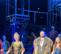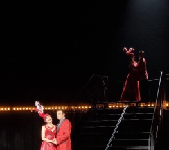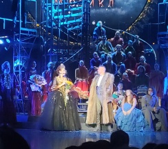 Если настоящие фиалки не поют, то девушка Виолетта по прозвищу "Фиалка Монмартра" из оперетты, названной по имени ее героини, весьма певучая особа. У актрисы Владлены Котовой невероятно нежный и звонкий голос, словно бегущий по тающим ледяным порожкам первый весенний ручеек, несущий аромат весны. Но больше всего меня поразили верхние ноты ее диапазона, если я не ошибаюсь, это ре третьей октавы. Если бы я могла, я бы слушала ее партии снова и снова. Впрочем, в этом спектакле меня впечатлил именно букет женских голосов. Полина Леонова, сыгравшая предательницу Мадлен, имеет не столь высокий тембр, но ее голос звучит более бархатно. Ее партии я тоже могла бы слушать бесконечно. Но и это еще не все. Роль хозяйки пансиона Мадам Арно исполнила актриса Анна Новикова, обладательница третьего в этом роскошном букете го́лоса, который можно слушать непрерывно. Три женских роли, три голоса, гармонично, контрастно и очень красиво. Но на самом деле, состав великолепен, и все оставшиеся роли, а остальные были только мужские роли, не считая хора, тоже были великолепны. Например, голос Павла Иванова, сыгравшего роль Рауля Делакруа, показался мне очень похожим на голос Сергея Лемешева, такой же мягкий баритон.