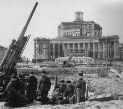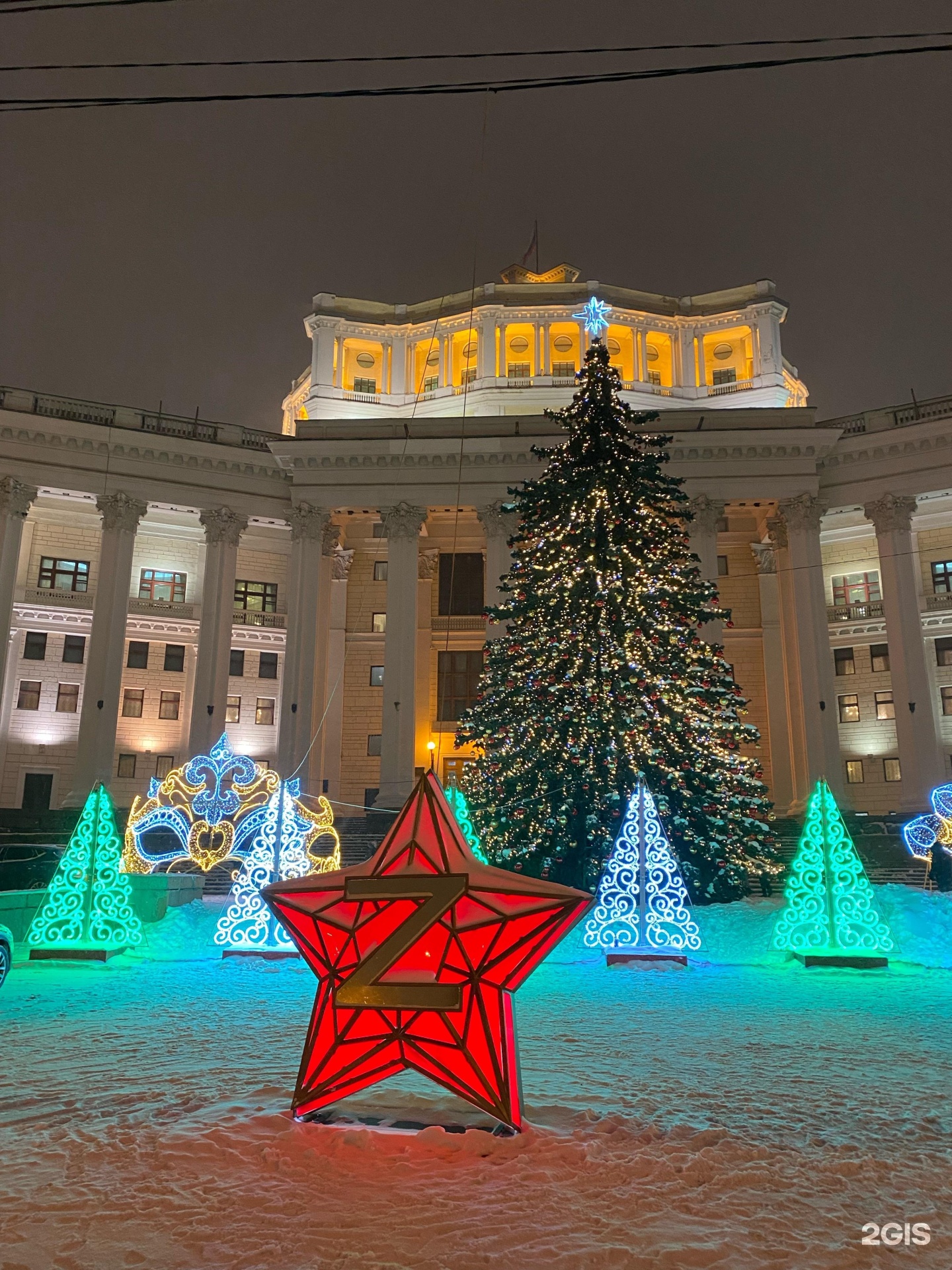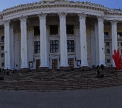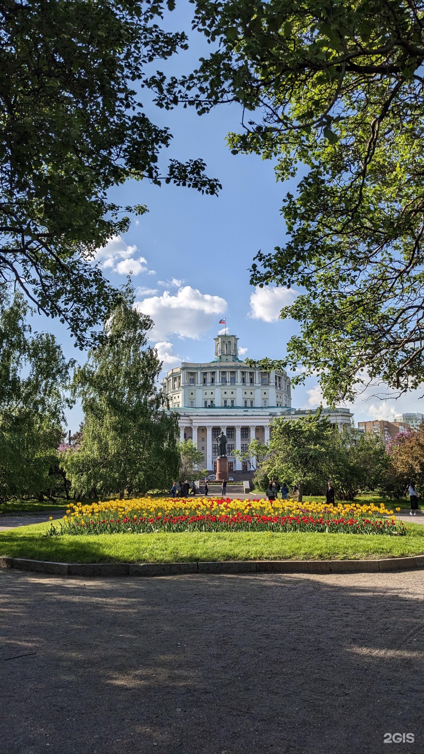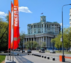 Здание театра – один из ярчайших примеров так называемого сталинского ампира, не имеющее себе аналогов, грандиозное по масштабам. В форме пятиконечной звезды здание было построено в 1934–40 гг. на Суворовской площади по проекту К.С.Алабяна и В.Н.Симбирцева (при участии Б.Г.Бархина).